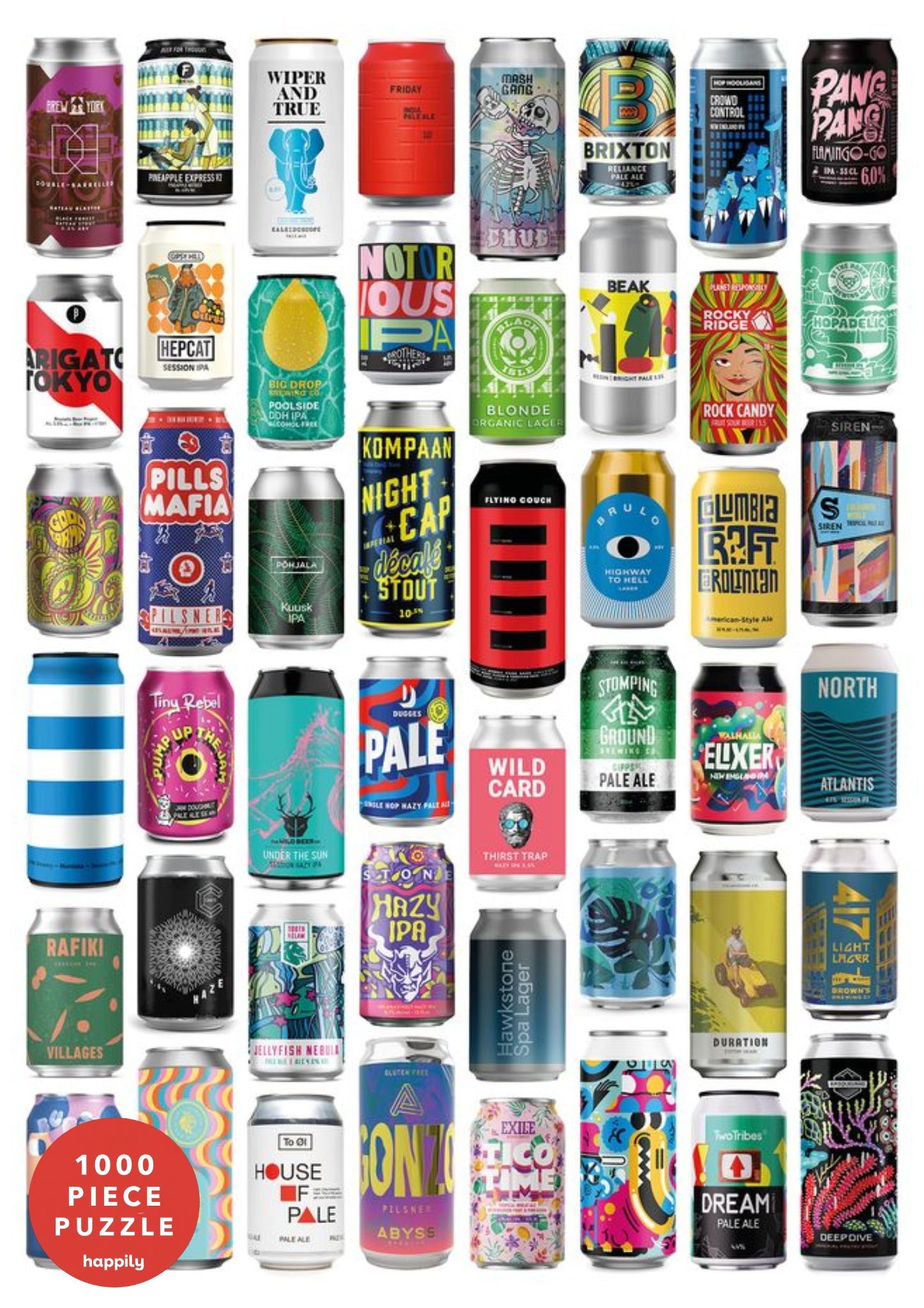 Crafty - 1,000 Piece Jigsaw Puzzle for Adults featuring beautifully designed beer cans, from 48 different craft breweries from around the globe.