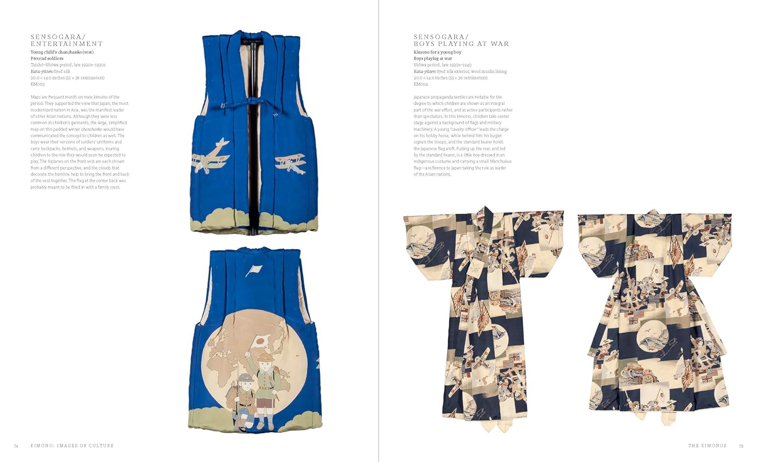 Featuring more than 200 full color photographs and insightful commentary by Jacqueline Atkins, renowned textile historian, this volume introduces readers to the concepts of Omoshirogara kimono or “amusing/interesting garments,” and Sensōgara, or war/propaganda garments. It details changes in fabrics and production techniques and explores differences across gender and age.