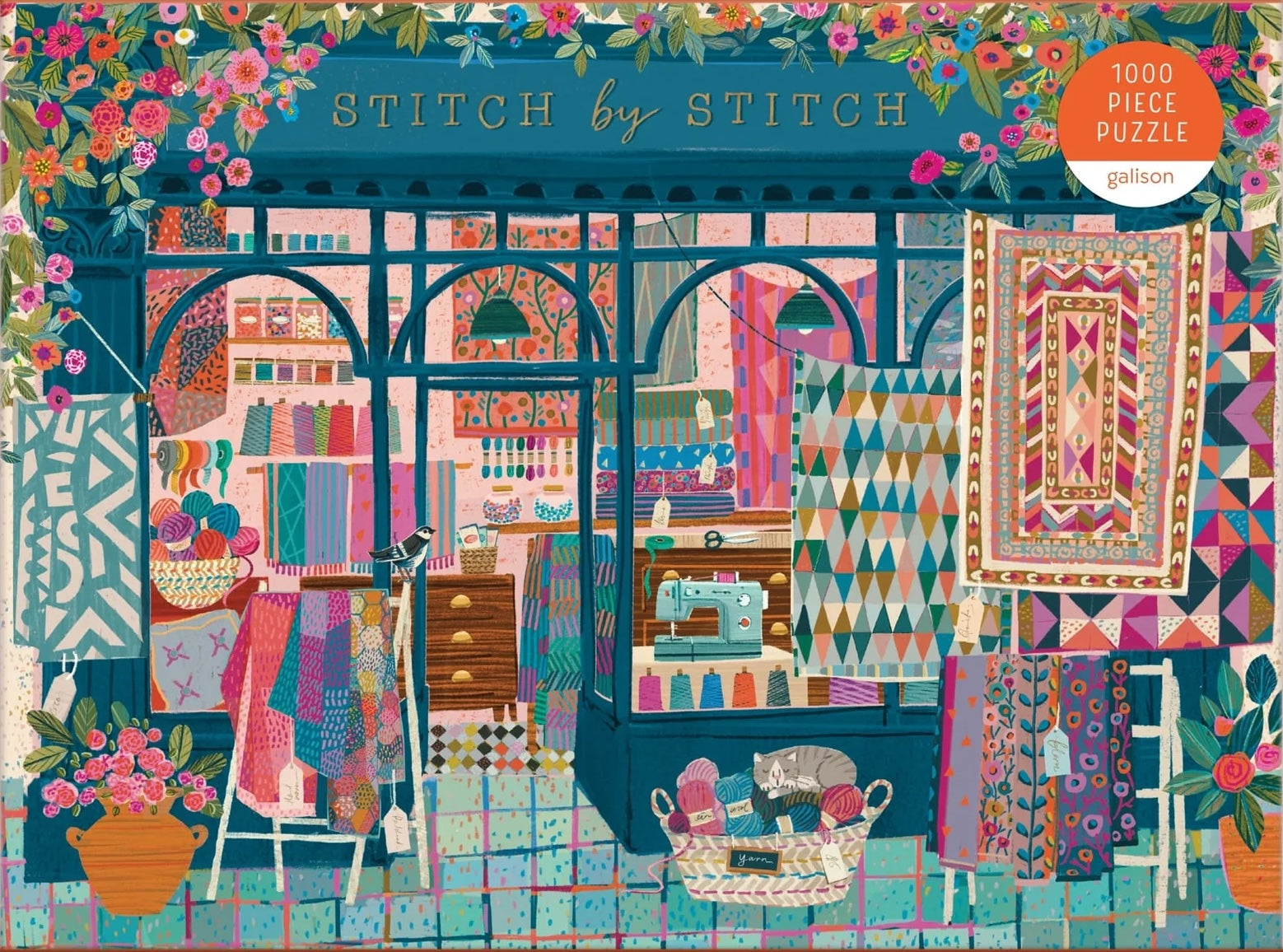 The Stitch by Stitch 1000 Piece Puzzle from Galison features a charming illustration from bestselling artist Victoria Ball. Known for her cozy and charming illustration style, Victoria Ball developed a quilting and crafting themed storefront image named Stitch by Stitch. Galison puzzles are packaged in matte-finish sturdy boxes, perfect for gifting, reuse, and storage.