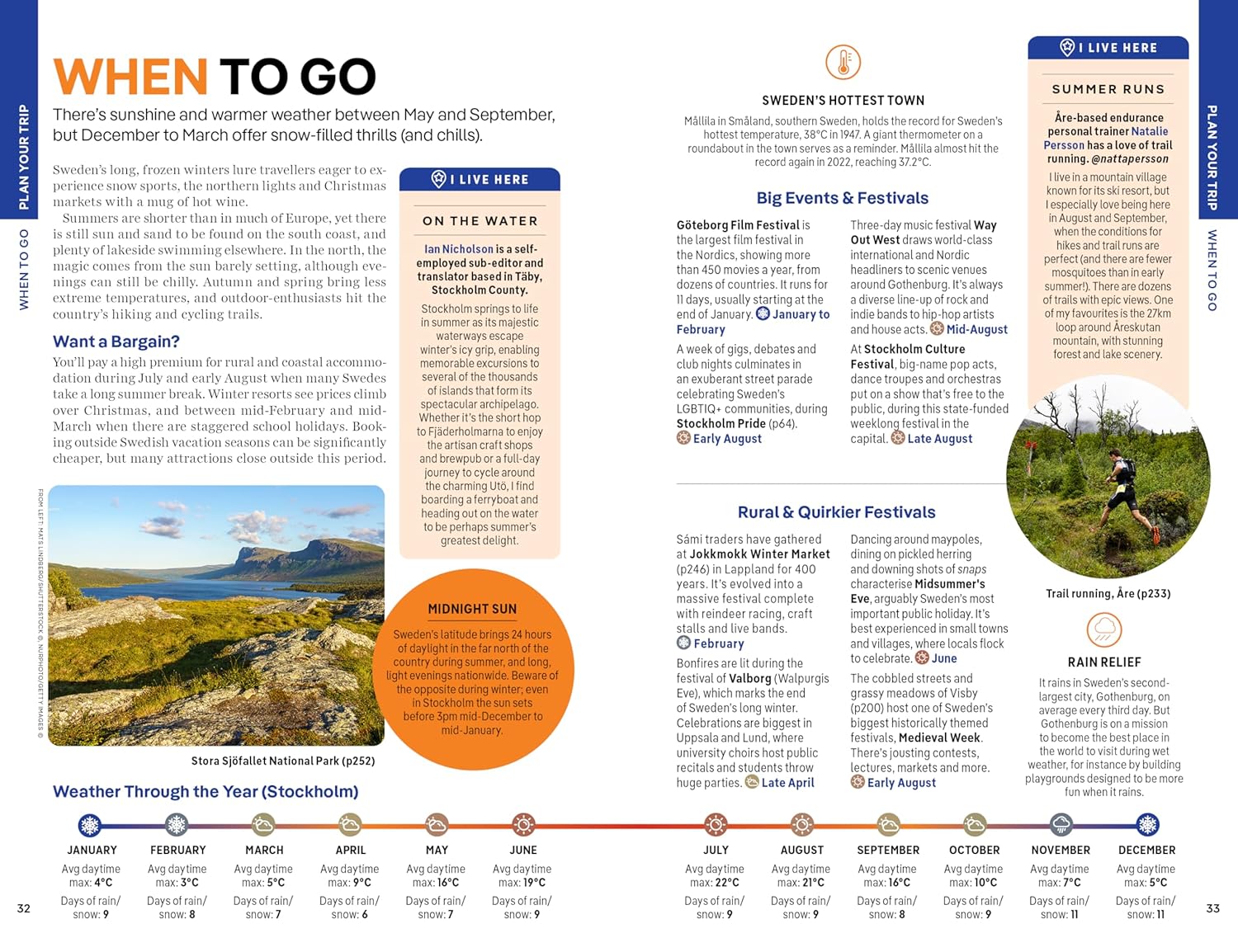 Our classic guidebook format contains the most comprehensive level of information for planning multi-week trips All-new structure and design that's easy to use so you can navigate Sweden effortlessly Exciting itineraries help you create your perfect adventure with suggestions for extended journeys, day trips, walking tours and activity-led excursions Expert local recommendations on eating, drinking, nightlife, shopping, accommodation, festivals, when to go and more Vibrant photography and maps including a pull-out map of Stockholm Get fresh takes on must-visit sights from driving around Lake Siljan to exploring Gothenburg on foot Essential information toolkit containing tips on arriving, transport, local etiquette, using money, LGBTIQ+ travel advice, useful words and phrases, accessibility and responsible travel Connect with Swedish culture through stories that delve deep into local life, history and traditions Covers: Stockholm; Uppsala & Central Sweden; Gothenburg & the Southwest; Malmö & the South; Gotland & the Southeast; Jämtland, the Bothnian Coast & Lappland