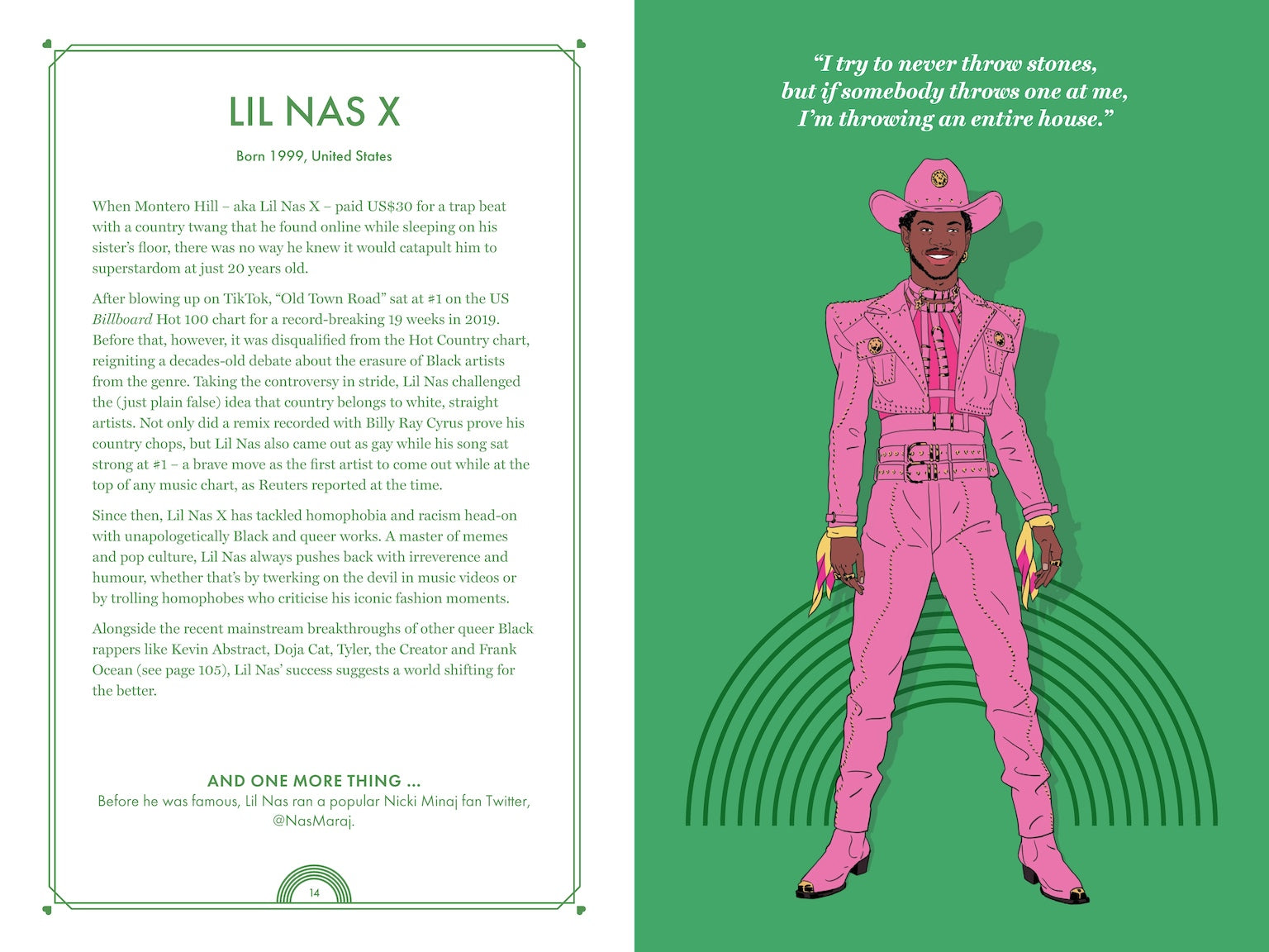 This book is a celebration of LGBTQIA+ activists, artists, comedians, writers, musicians and pop culture giants who have shaped our worlds, expanded our horizons and radically increased queer visibility.