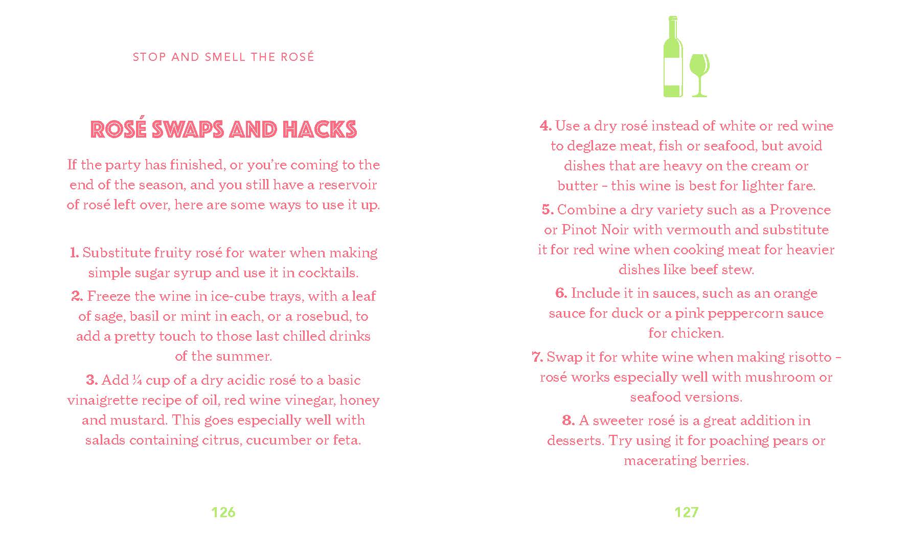 Anything is possible with sunshine and a glass of rosé.Pale and delicate or robust and ruby red, rosé has fuelled a revolution in the drinking world. Take a dip into this fact-filled book and discover the fascinating history of the pink drink, along with truly informative details on the winemaking process, types of grapes, growing regions of the world and the best ways to select and serve your rosé. Celebrate the halcyon days of summer all year round with 20 cocktail recipes and a variety of food pairings. Amuse yourself with entertaining quotations and sayings that capture the love of rosé. Explore fun facts, stats and trivia. There is something here for everyone, whether you prefer your Provence dry and sparkling or you’re a brosé who loves frosé.‘I think a rosé should have that inherently Pavlovian-to-women peachy-pink quality that just draws us in. I don’t know what it is about us girls, but we love pink’ Drew Barrymore, Instagram‘I love rosé more than any member of my biological family’ Josh Ostrovsky, Instagram‘Rose wine is like your little black dress… there’s one for breakfast, lunch and dinner’ Sommelier Belinda Chang, www.elle.comThe Mateus Rosé bottle was inspired by the canteens used by soldiers in the First World War. And during the Cold War period, Mateus became one of the most drunk wines by US Army soldiers stationed to European bases.Provence is one of the world’s biggest rosé-wine-producing regions, dedicating 89 per cent of their vines to rosé!In 2016 a New York Italian bar called Bar Primi made a rosé slushy with rosé wine, vermouth and puréed strawberries, called the frosé, that became a real-life and Instagram hit.