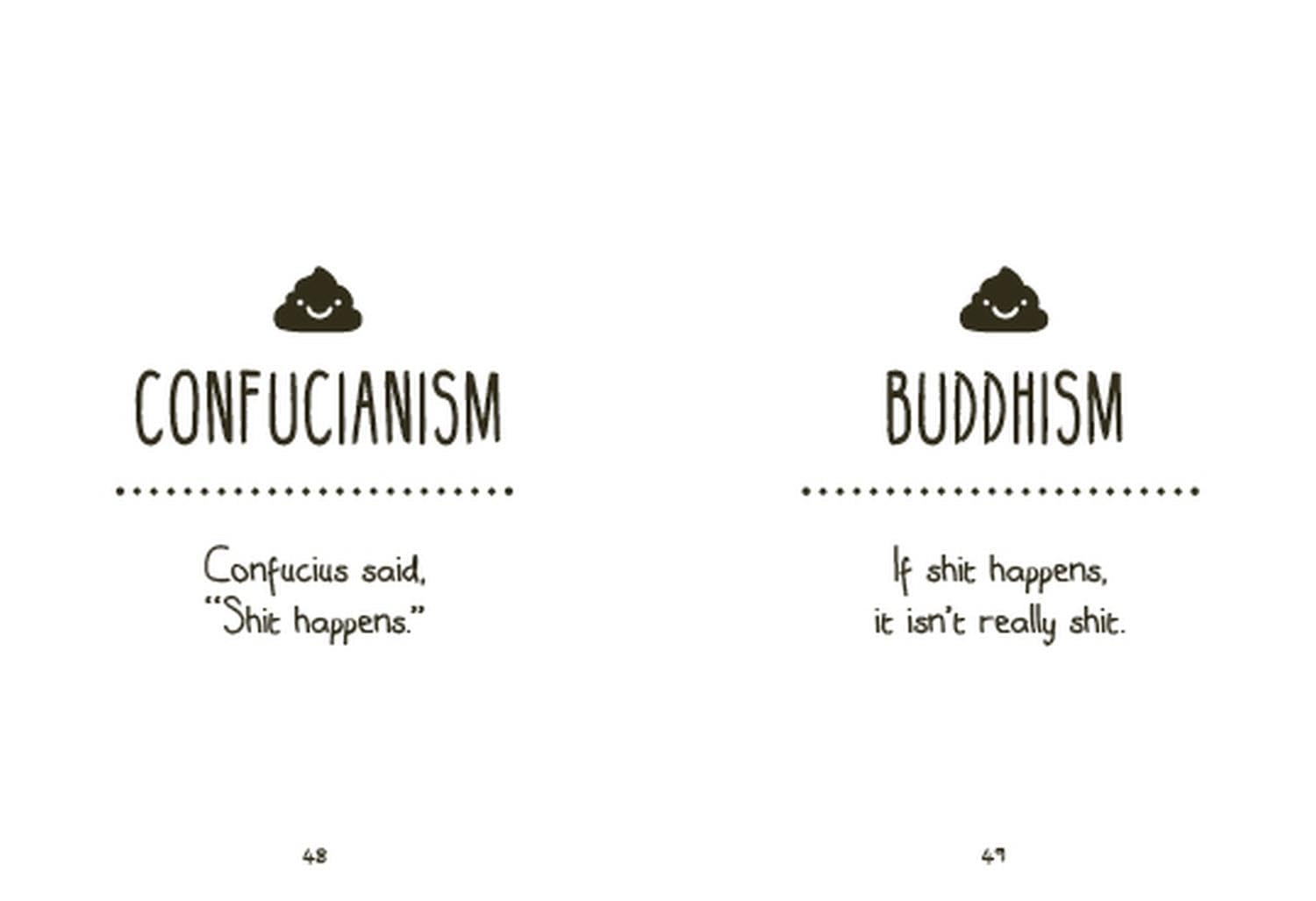 Some of the shits this book gives: · Doctors: Take two shits and call me in the morning · Waiters: You want fries with that shit? · Darwinism: Survival of the shittest · Jediism: May the shit be with you