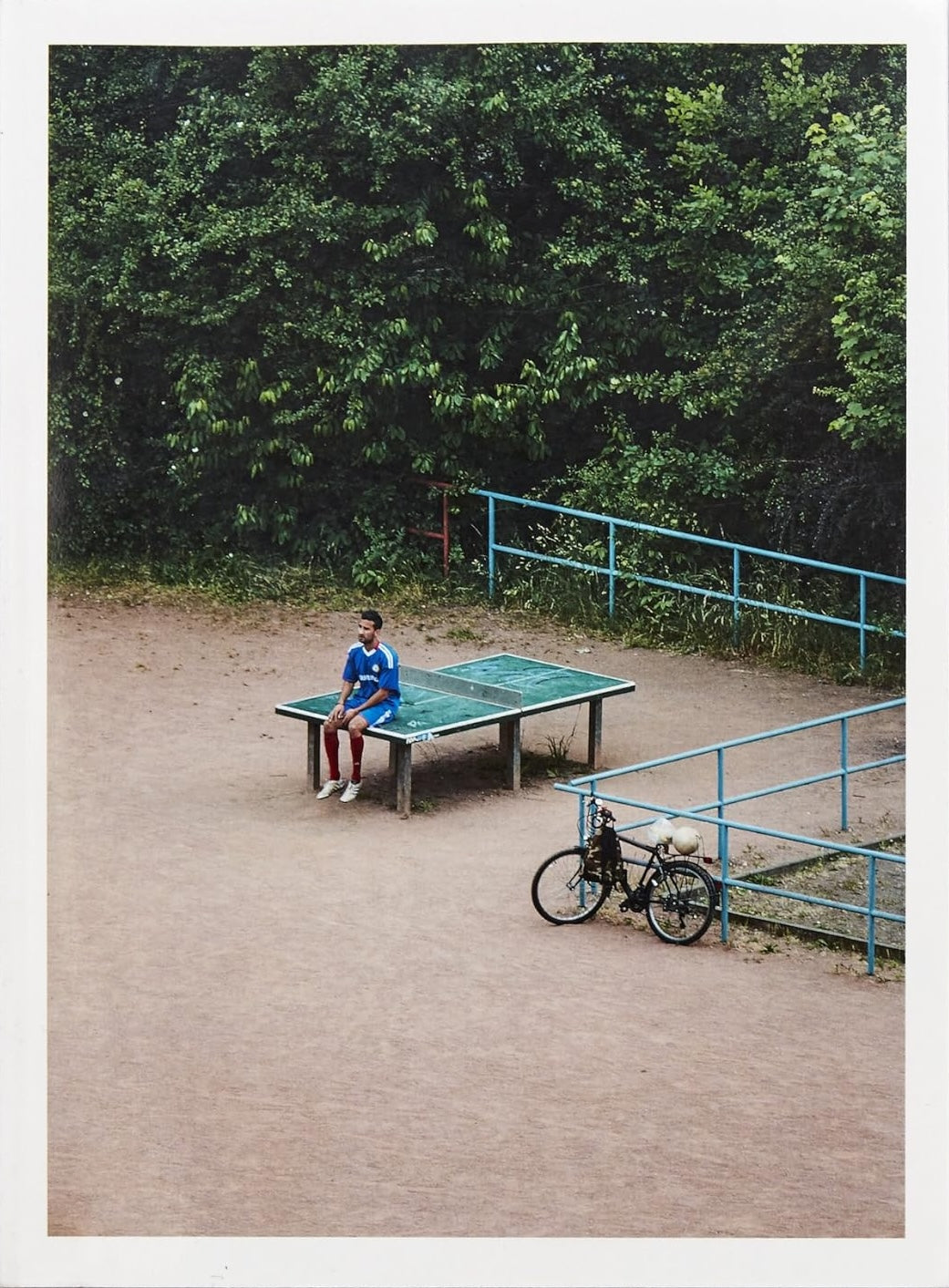 The winner of the 2018 MACK First Book Award, TTP is a series of photographs made by Hayahisa Tomiyasu from the window of his former student apartment in the German city of Leipzig. From his south-facing view we see a 'tischtennisplatte' or ping pong table used for a plethora of purposes - including a sun bed, a laundry counter, a kids' climbing frame, an exercise site, a family lunch spot, a refuge from busy streets, among various other uses - except from table tennis. Tomiyasu spent five years documenting the hue table and thanks to his sustained curiosity we observe the idiosyncrasies of human behaviour and social habits, as seasons change, scenes mutate and people come and go.
