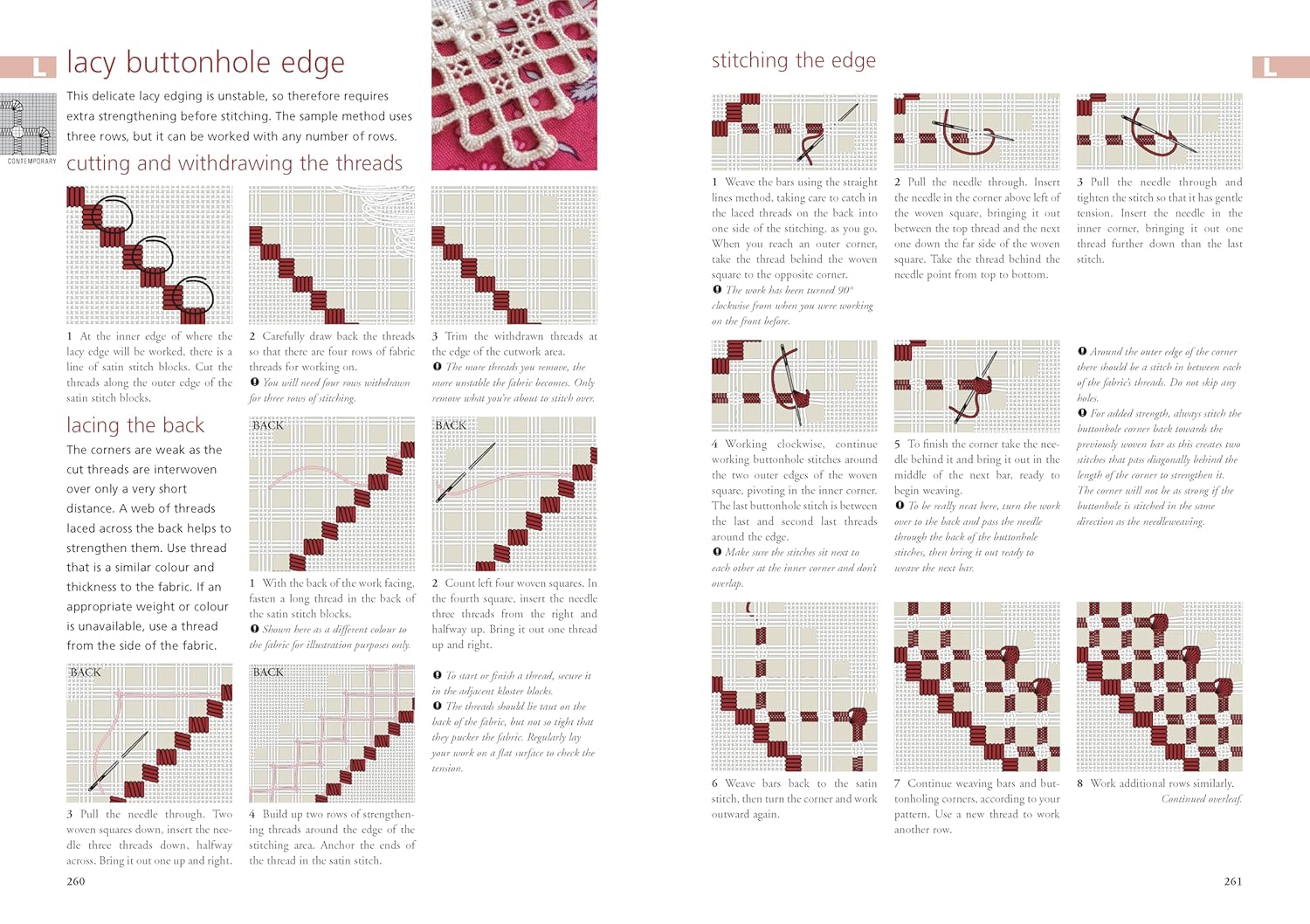 Inside this invaluable resource, you'll discover a treasure trove of traditional and contemporary filling stitches, ranging from delightfully simple to exquisitely complex. Each stitch is meticulously explained in clear, step-by-step instructions accompanied by detailed diagrams. Whether you're a visual learner or prefer following written instructions, this book caters to your learning style with color-coded left-handed (red) and right-handed (blue) instructions for every stitch. You will learn to avoid problems and have the self-assurance to fix any mistakes you make.