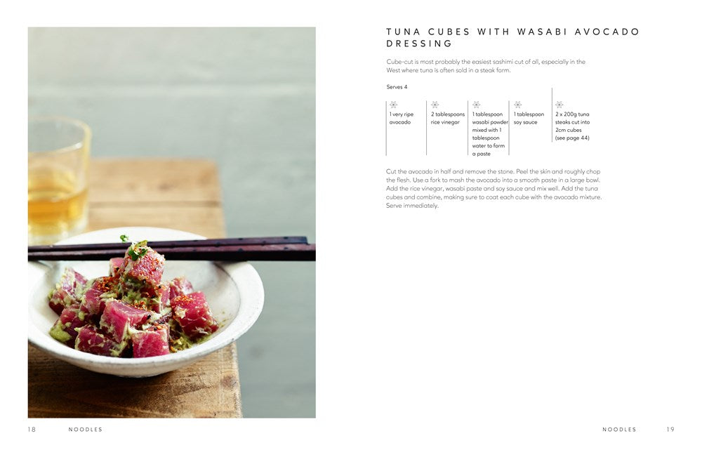 Chapters are divided into: · Fresh - vibrant and healthy meals such as Yellowtail sashimi, Hand-rolled sushi and Japanese-style duck orange. · Comfort - bowls of warming Moon udon, Chicken and miso porridge or Sea bream rice to enjoy on a cold winter's evening. · Fast - Dashi-rolled omelette and other meals that can be pulled together in under 30 minutes. · Light - delicious recipes such as Tiger prawn clear soup and Spinach and tofu jelly. · Vegan - nourishing plant-based recipes. · Sweet - creative Japanese desserts such as Matcha jelly, Kyoto tiramisu and Black sesame ice cream. · Basic - Dashi and flavorsome dressings you can use to quickly create authentic Japanese dishes.