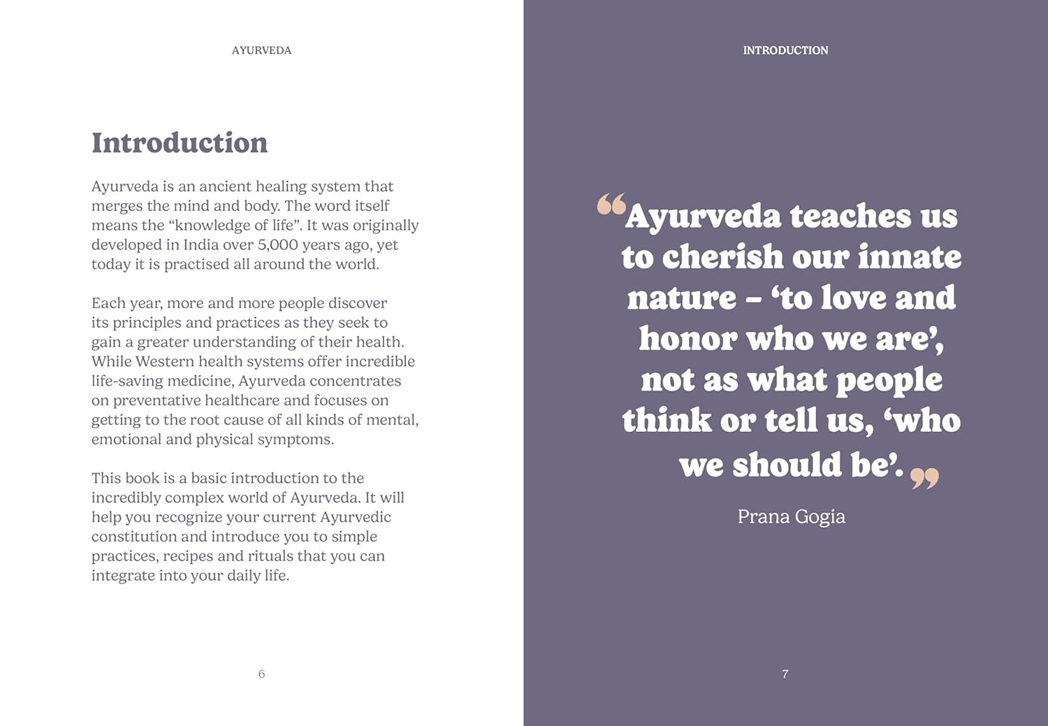 The Pocket Ayurveda is a basic introduction to the incredibly complex world of Ayurveda. It will help you recognize your current Ayurvedic constitution and introduce you to some of its simple practices, recipes and rituals so that you can integrate these into your daily life.