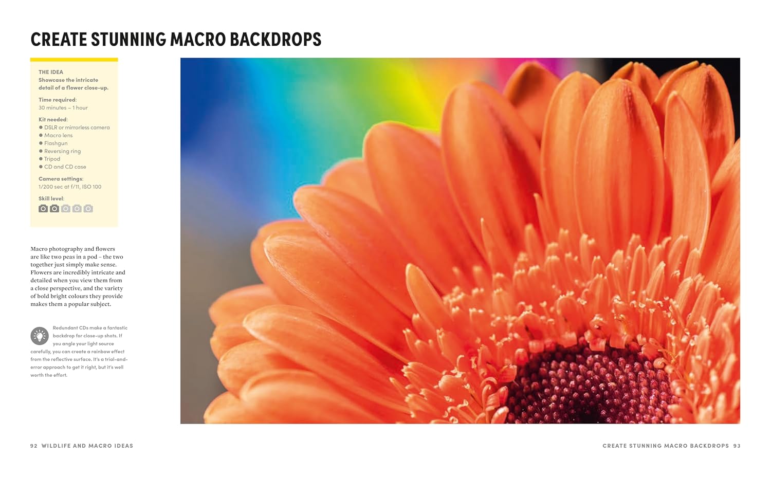 Elevate your craft and unleash your creativity with the Ultimate Photography Ideas Book. Requiring simple and minimal kit, this no-nonsense guide is packed with over 60 captivating challenges across every major genre of photography: