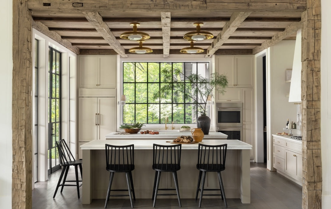 Informed by Adams’s deep knowledge of historic precedents, proportions, and details, the homes featured in this book are imbued with soul, whether it’s a charming house in the woods on the lake, a refined contemporary beachside retreat, or a traditional manor house in town. While the homes featured range in scale and style— Tudor, Arts and Crafts, French country, Southern farmhouse—Adams imbues each with natural materials such as bespoke architectural details in millwork and molding, arched doorways, and oversized windows. He brilliantly weaves wood, stone, copper, and other natural substances through the interiors to create an effect that casts a spell inside and out. These are houses that are grounded in the past, designed for the present, and intended to remain beautiful and functional over the long term.