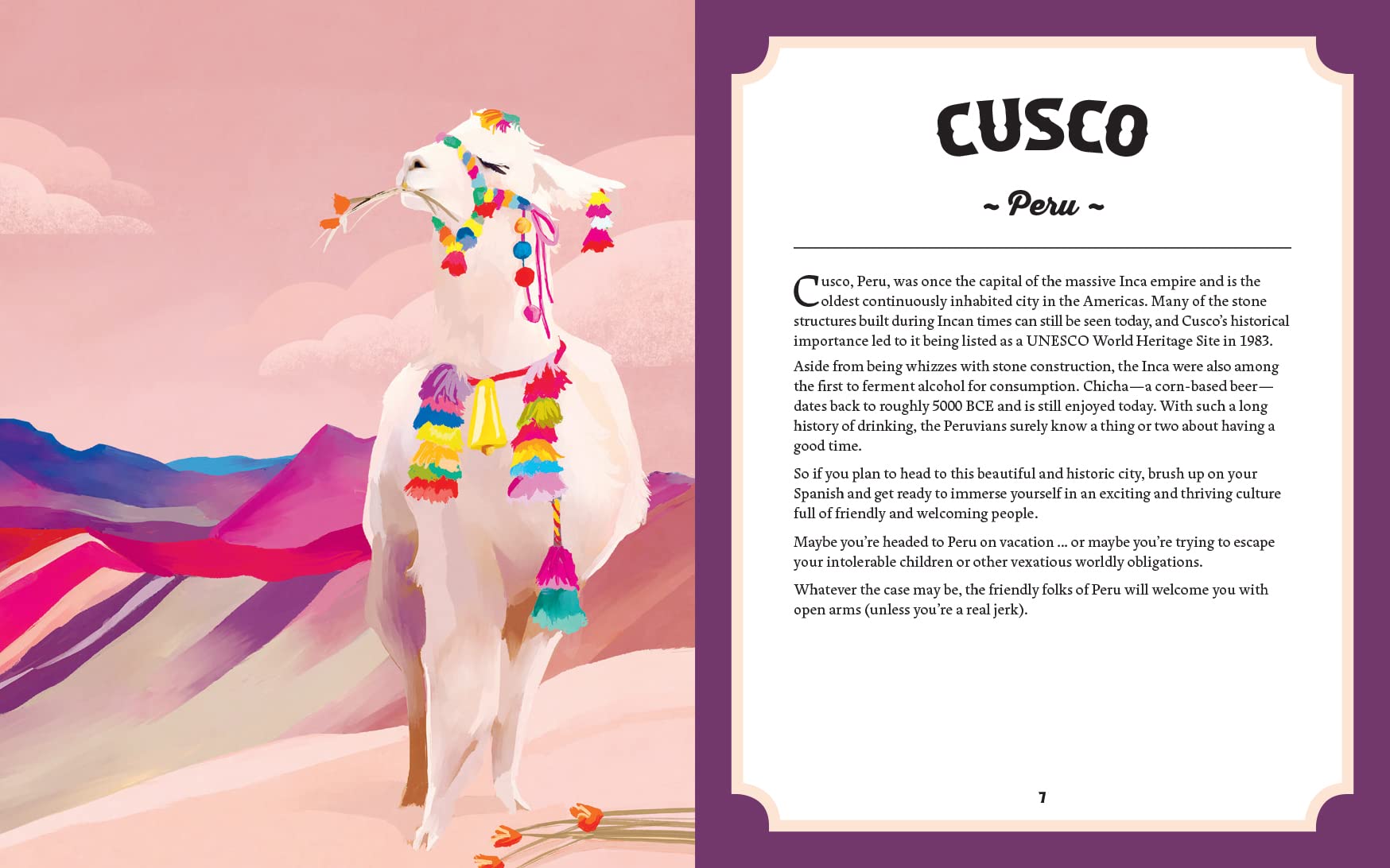 This is a book for cocktail lovers and travel dreamers. You could be enjoying a Desert Road tequila cocktail and imagine yourself in Amarillo, Texas in the US, or sipping on a Fire and Ice whiskey cocktail inspired by Reykjavik, Iceland. There are also some bonus ideas for drinking games included.